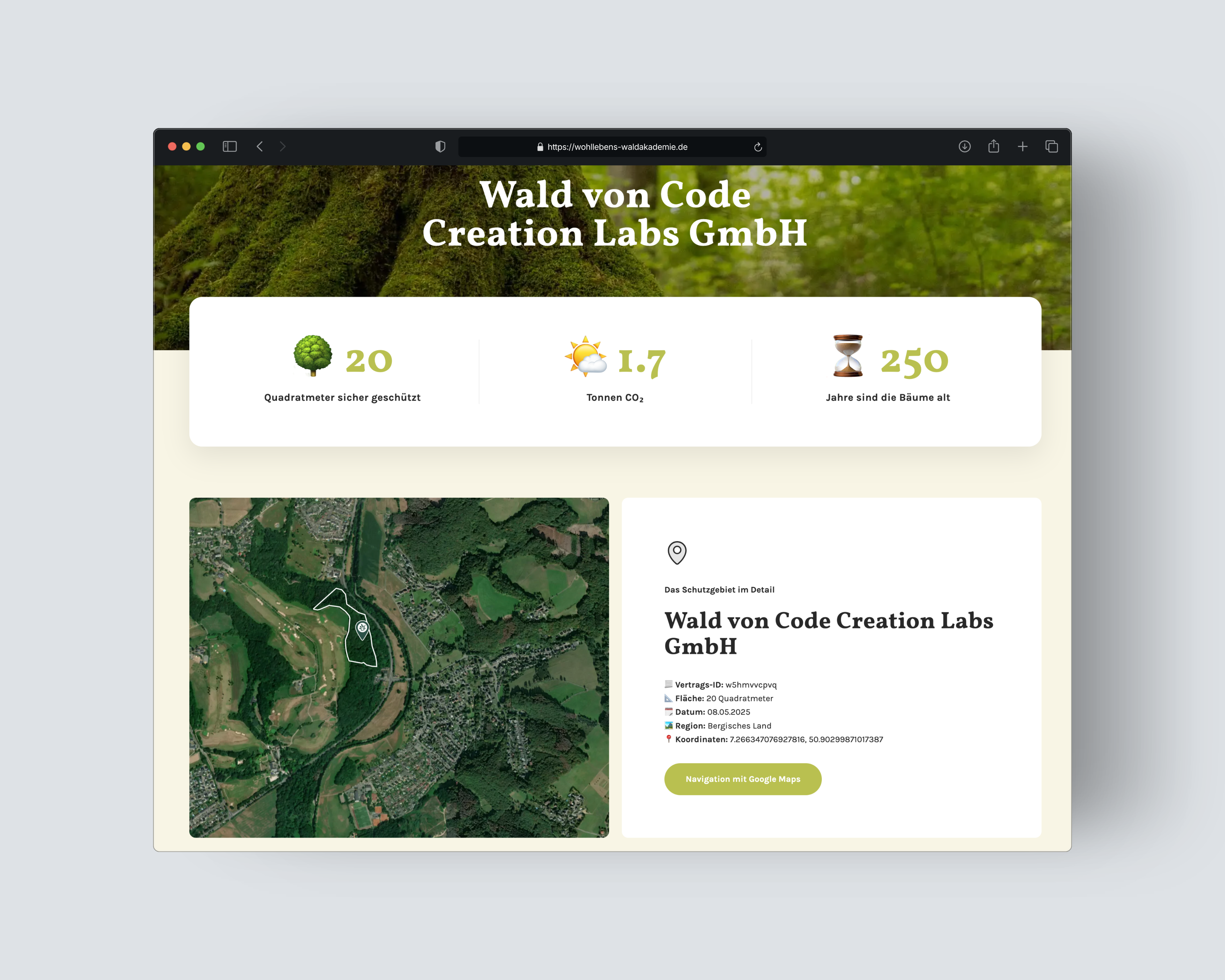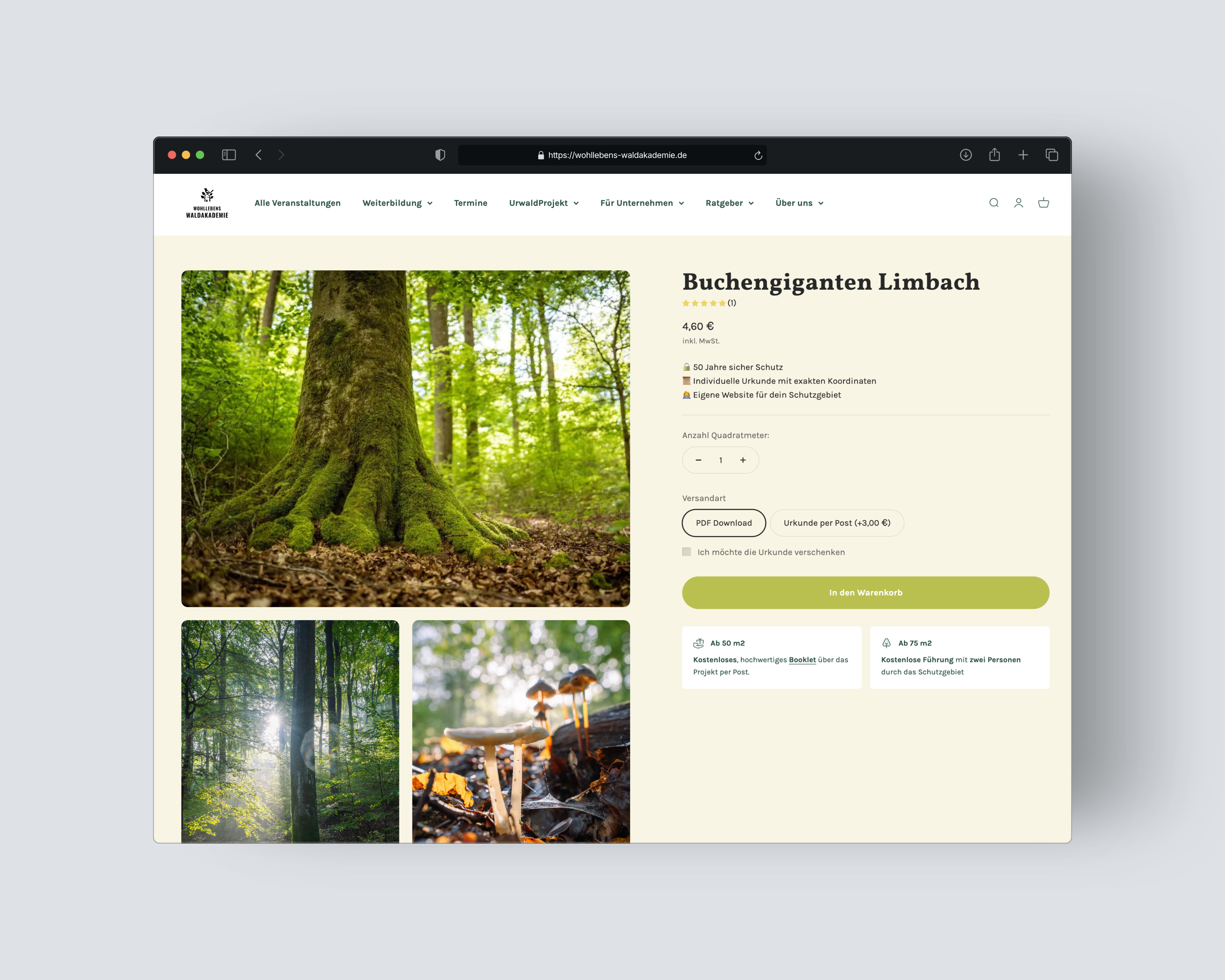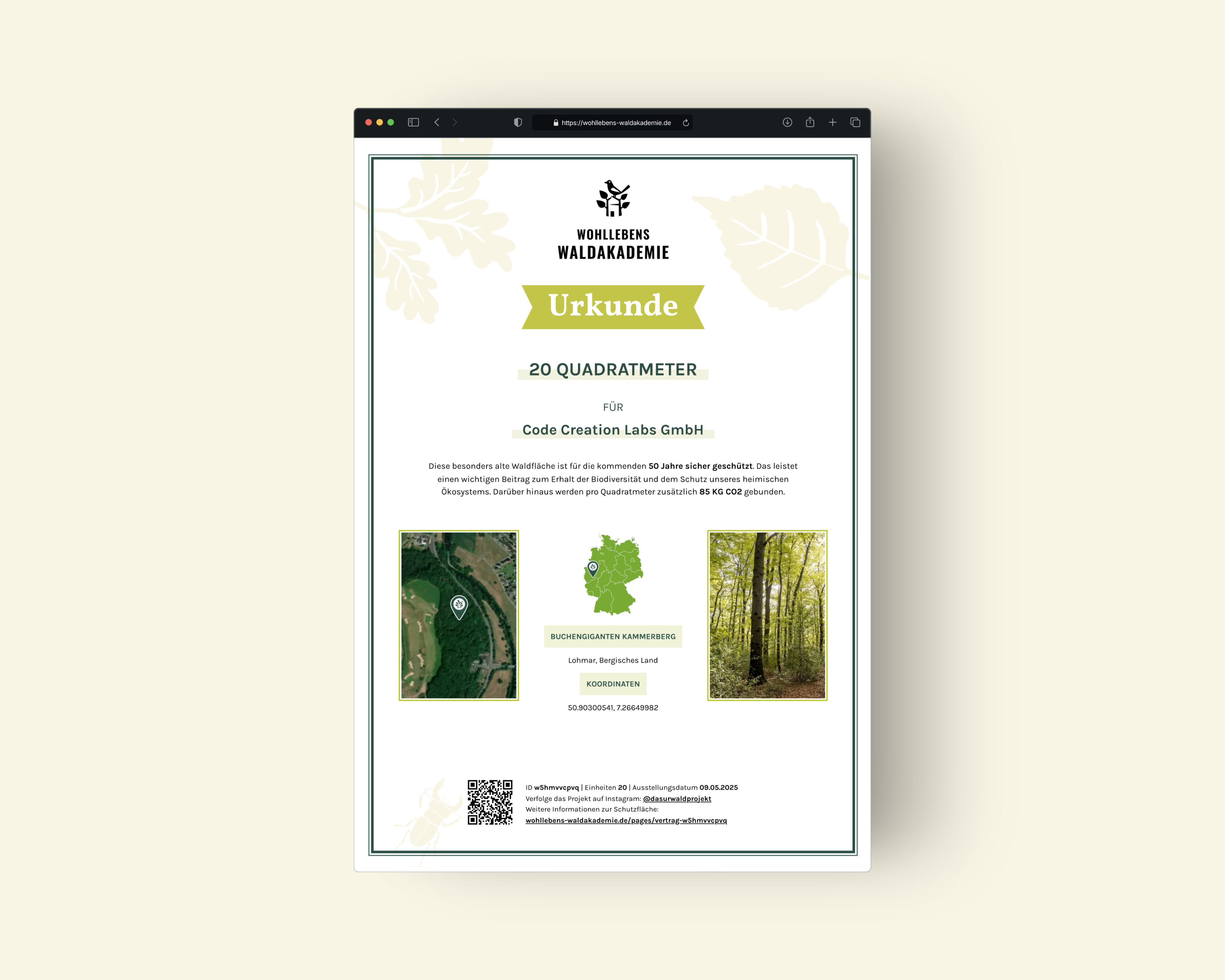 On the product page for a forest, you can protect an indefinite number of square meters of forest. The certificate can also be personalized or even ordered by mail if desired.